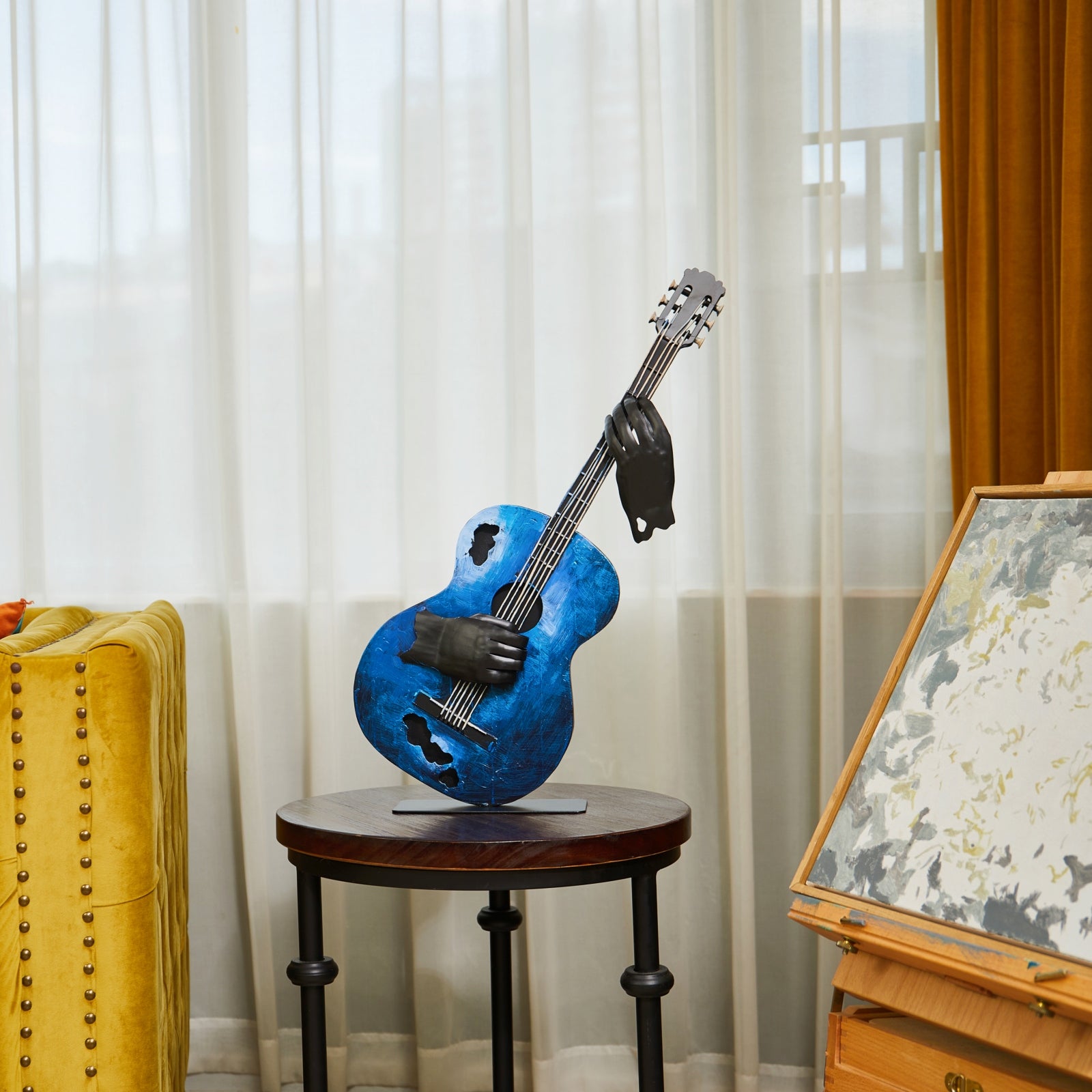 SunBlogs Art Metal Guitar Statue & Sculpture Decor