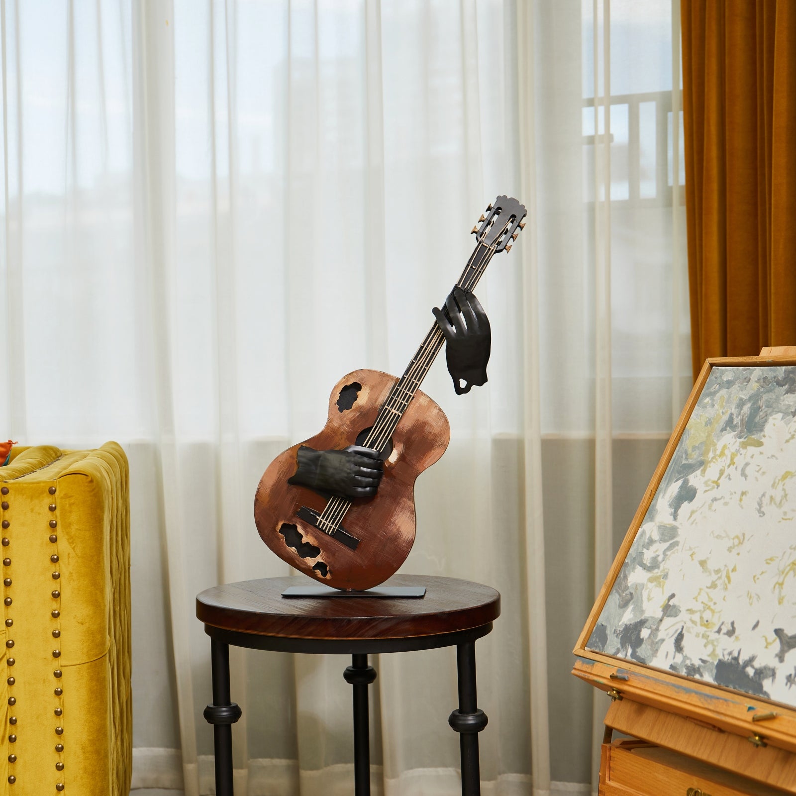 SunBlogs Art Metal Guitar Statue & Sculpture Decor