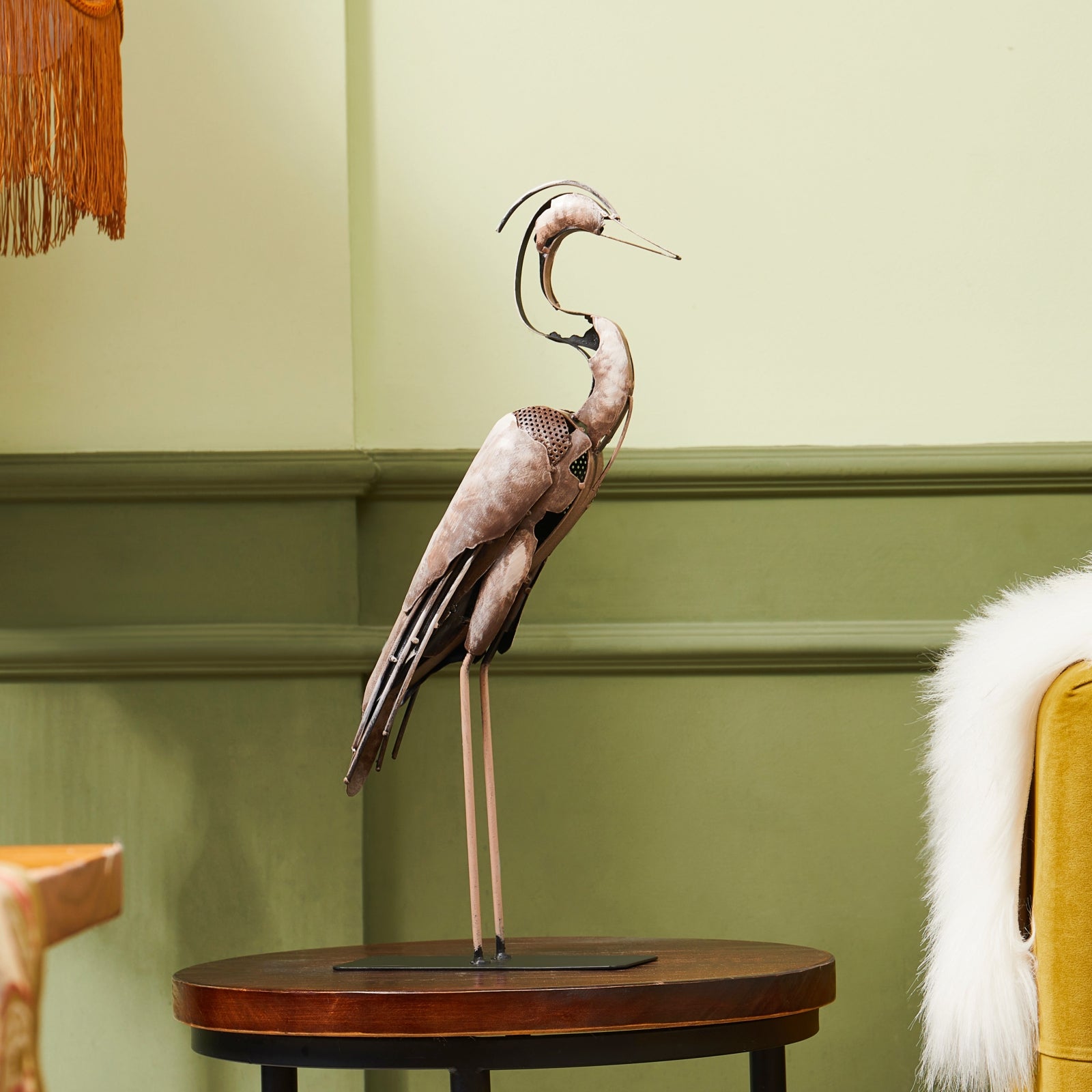 ITEM: Handmade Metal Heron Statue & Sculpture